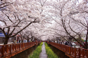 여좌천 로망스 다리: 드라마 ‘로망스’ 촬영지로 유명하며, 벚꽃과 다리가 조화를 이루는 아름다운 경관이 돋보인다.
