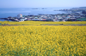 유채꽃 명소(섭지코지, 산굼부리): 넓게 펼쳐진 유채꽃밭에서 제주의 봄을 만끽할 수 있다.